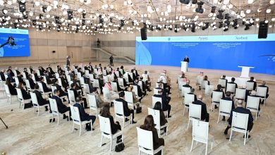 İlham Əliyev səmaya qaldırılan qırıcılarla qarşılandı – Foto