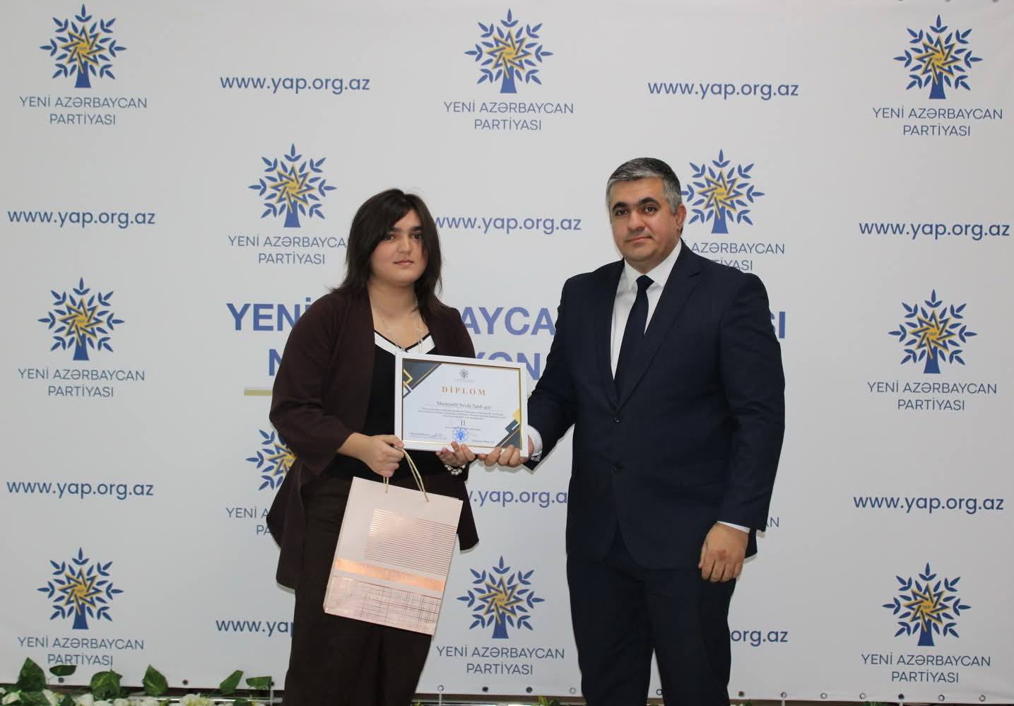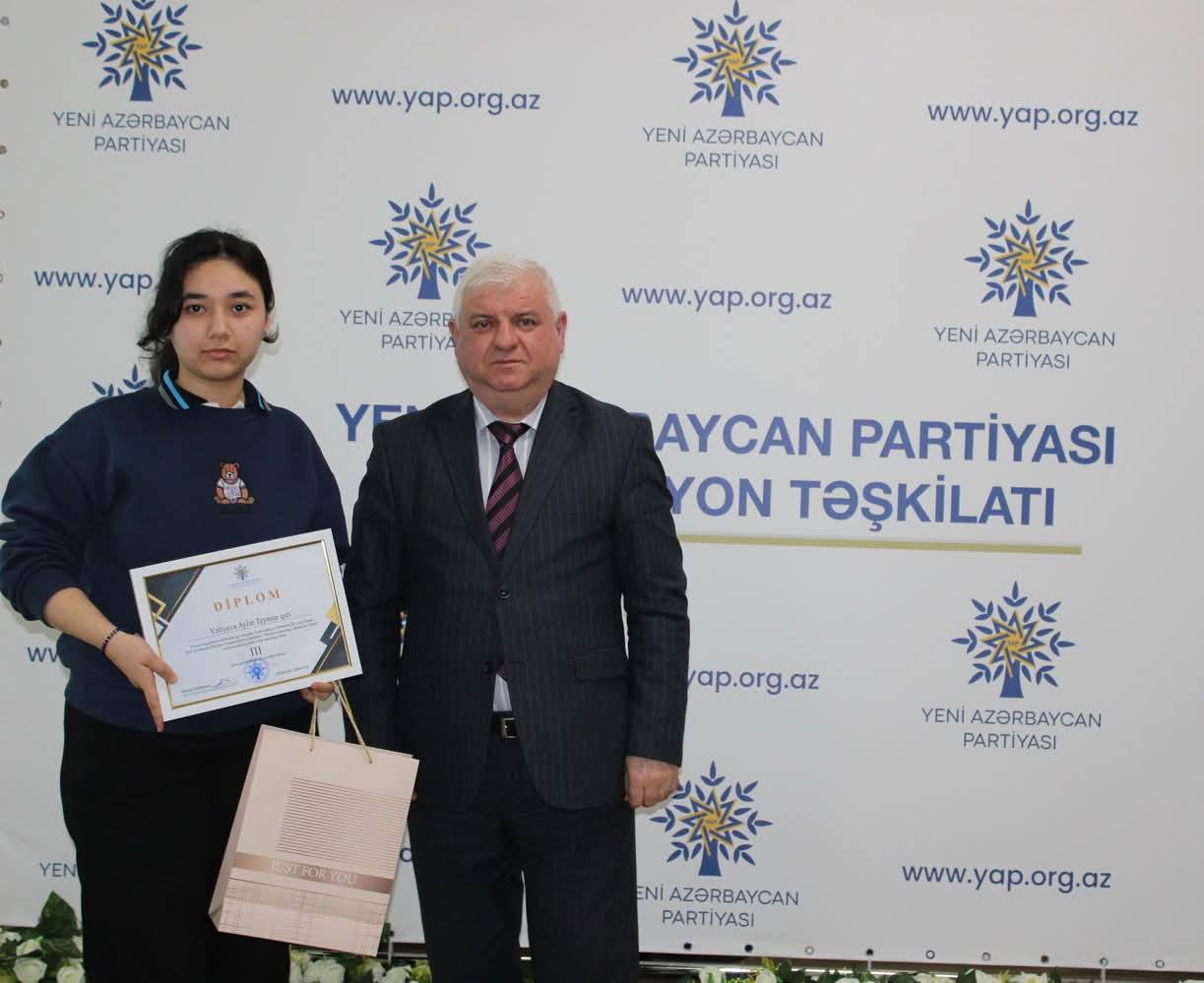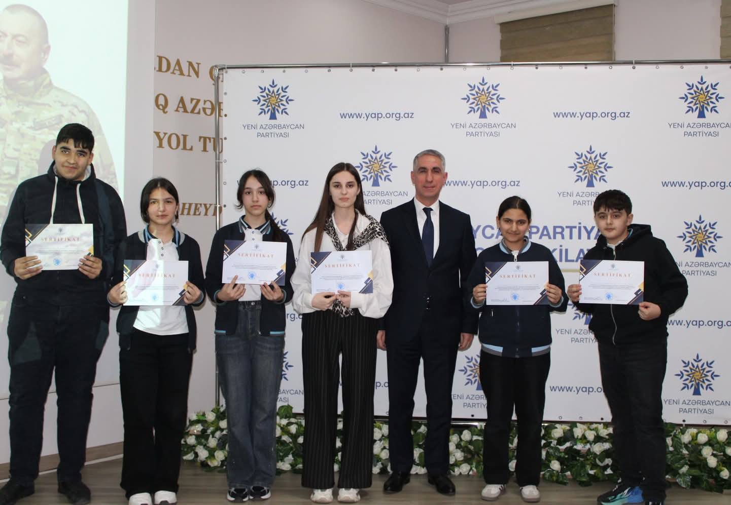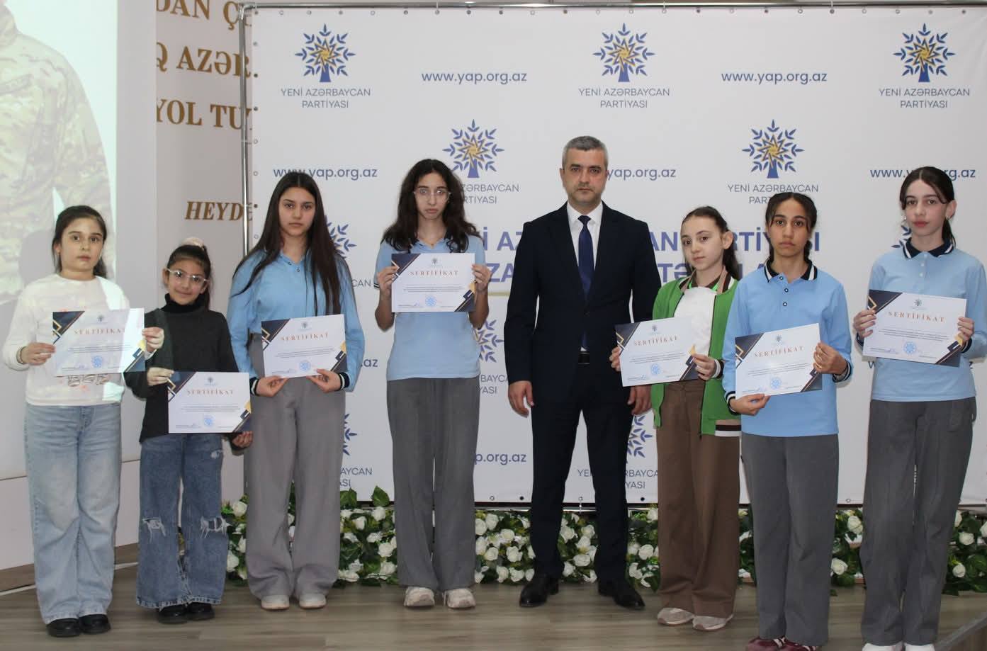 Çıxışlardan sonra “Dirçələn Qarabağ, abadlaşan Xocalı” mövzusunda keçirilmiş rəsm və inşa müsabiqəsinin qaliblərinin təltif olunması mərasimi keçirilib. Məlumat verilib ki, Nizami rayonunda fəaliyyət göstərən 30 təhsil müəssisəsi üzrə inşa müsabiqəsinə 71, rəsm müsabiqəsinə isə 49 iş daxil olub.