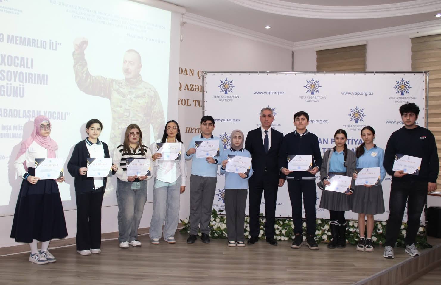 Yeni Azərbaycan Partiyası Nizami rayon təşkilatı Xocalı soyqırımının növbəti ildönümü ilə əlaqədar “Şəhərsalma və Memarlıq İli” çərçivəsində “Dirçələn Qarabağ, abadlaşan Xocalı” mövzusunda tədbir keçirib.