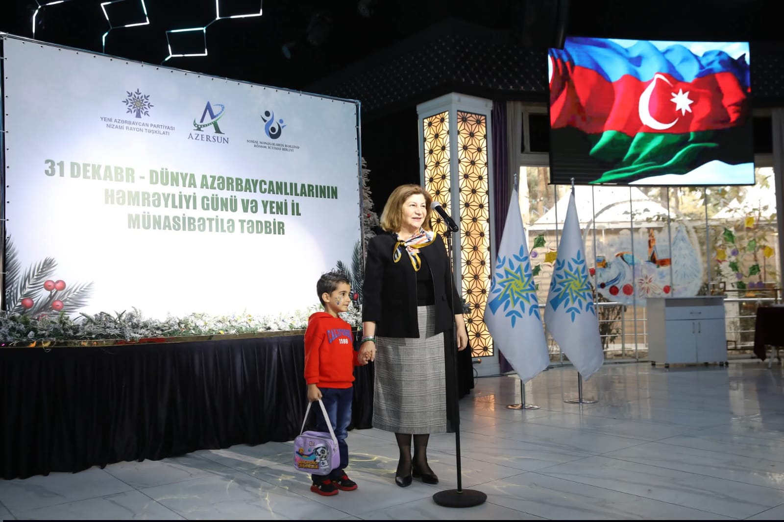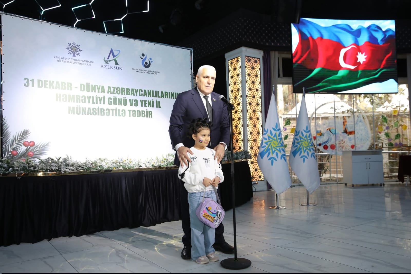 Azərbaycan Respublikasının Dövlət Himninin səsləndirilməsi ilə başlanan şənliyin rəsmi hissəsində Yeni Azərbaycan Partiyası Mərkəzi Aparatının rəhbərinin müavini Ramilə Bədəlova, Milli Məclisin deputatı, “İki sahil” qəzetinin baş redaktoru Vüqar Rəhimzadə, Nizami Rayon İcra Hakimiyyəti başçısının birinci müavini Könül Həsənova, Yeni Azərbaycan Partiyası Nizami rayon təşkilatının sədri Ramil Vəlibəyov, 1 saylı Uşaq evi sosial xidmət müəssisəsinin direktoru Nərminə Zöhrabova, Azərsun Holdinqin İnzibati təsərrüfat departamentinin bölmə rəisi Könül Bəkirova, “Sosial məsələlərin həllinə kömək” ictimai birliyinin sədri Nərmin Daşdəmirbəyli və başqaları çıxış ediblər, uşaqları bayram münasibətilə təbrik ediblər.