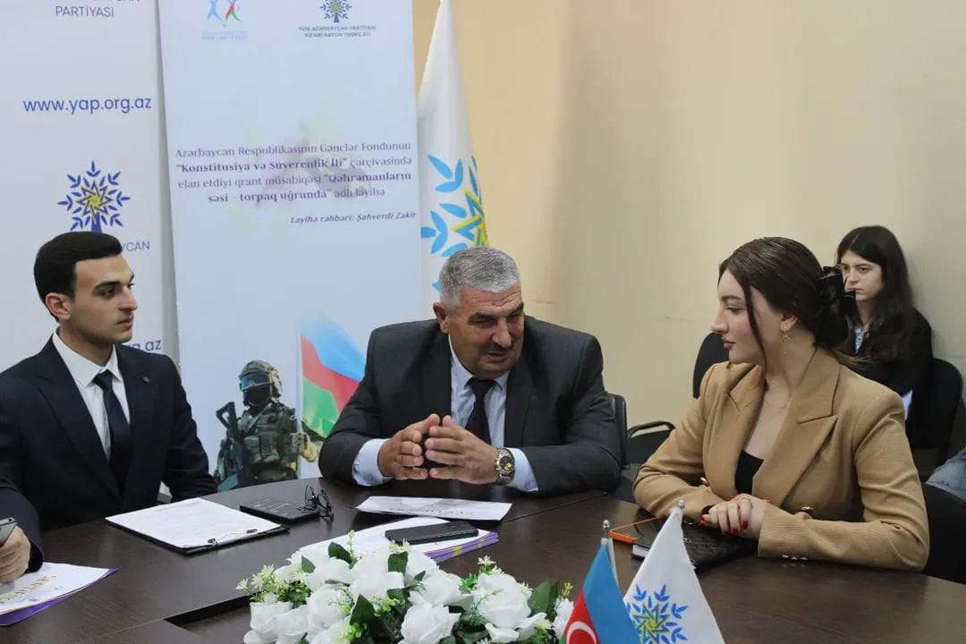 Azərbaycan Respublikası Gənclər Fondunun maliyyə dəstəyi ilə həyata keçirilən “Qəhrəmanların səsi – Torpaq uğrunda” adlı layihə üzrə YAP Nizami rayon təşkilatında ilk görüş təşkil olunub.