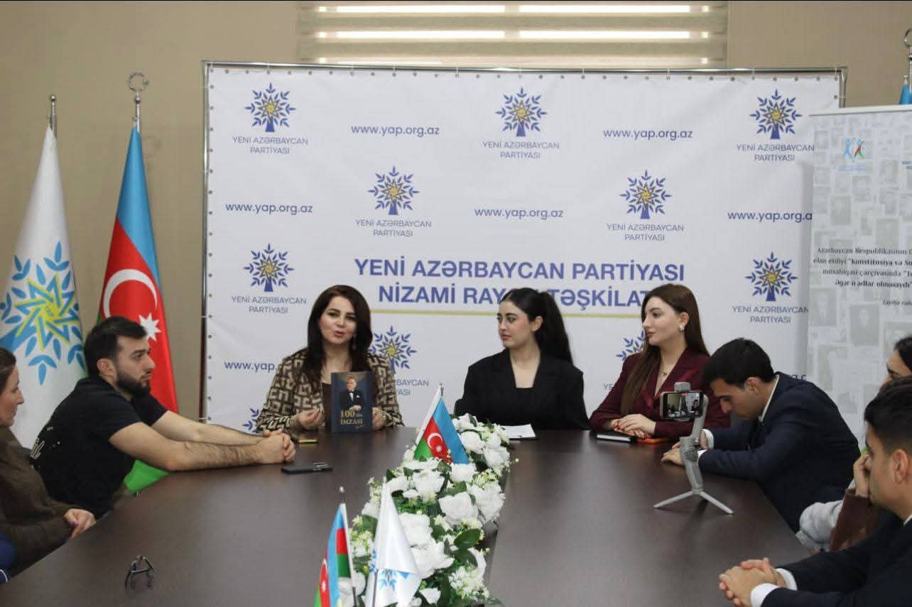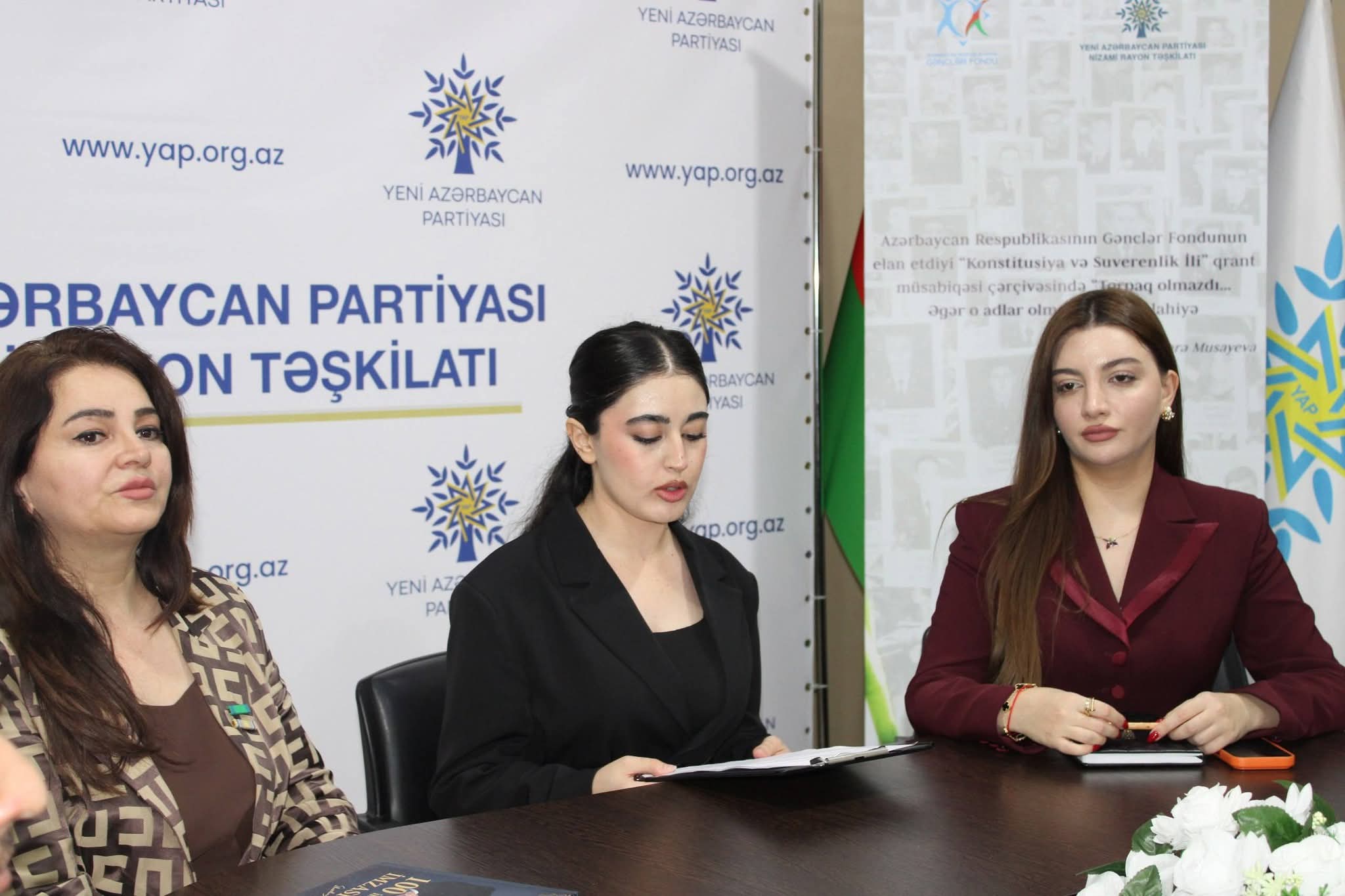Azərbaycan Respublikası Gənclər Fondunun maliyyə dəstəyi ilə “Konstitusiya və Suverenlik İli” çərçivəsində həyata keçirilən “Torpaq olmazdı, əgər o adlar olmasaydı” layihəsi üzrə YAP Nizami rayon təşkilatında yekun tədbir təşkil olunub.