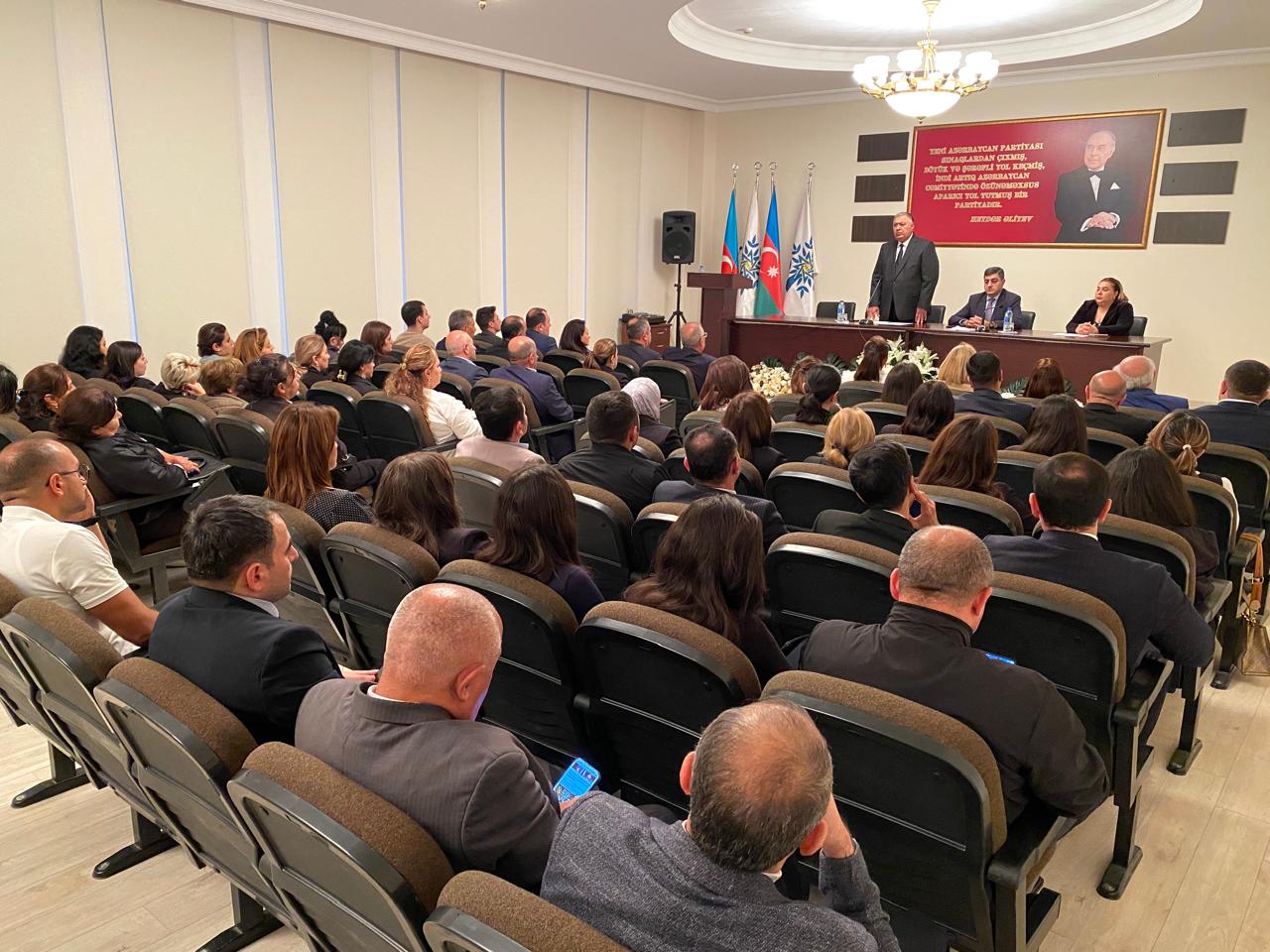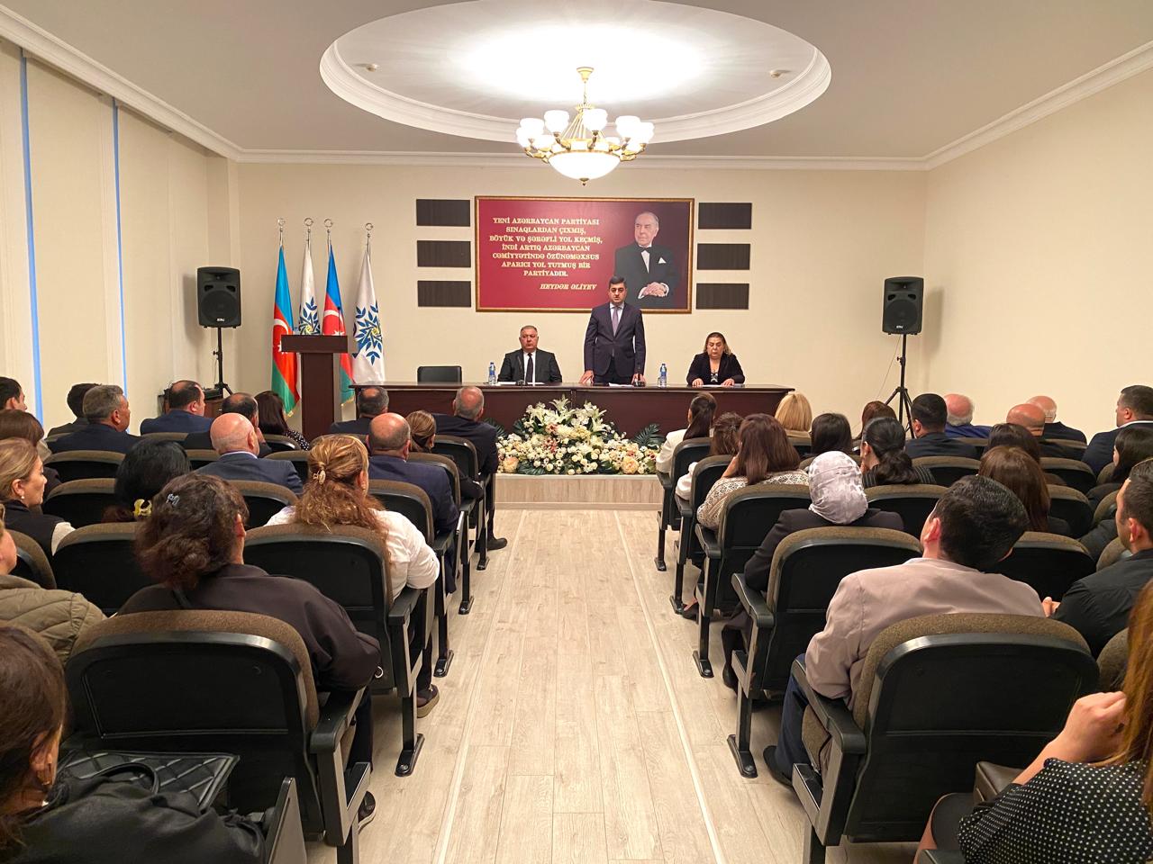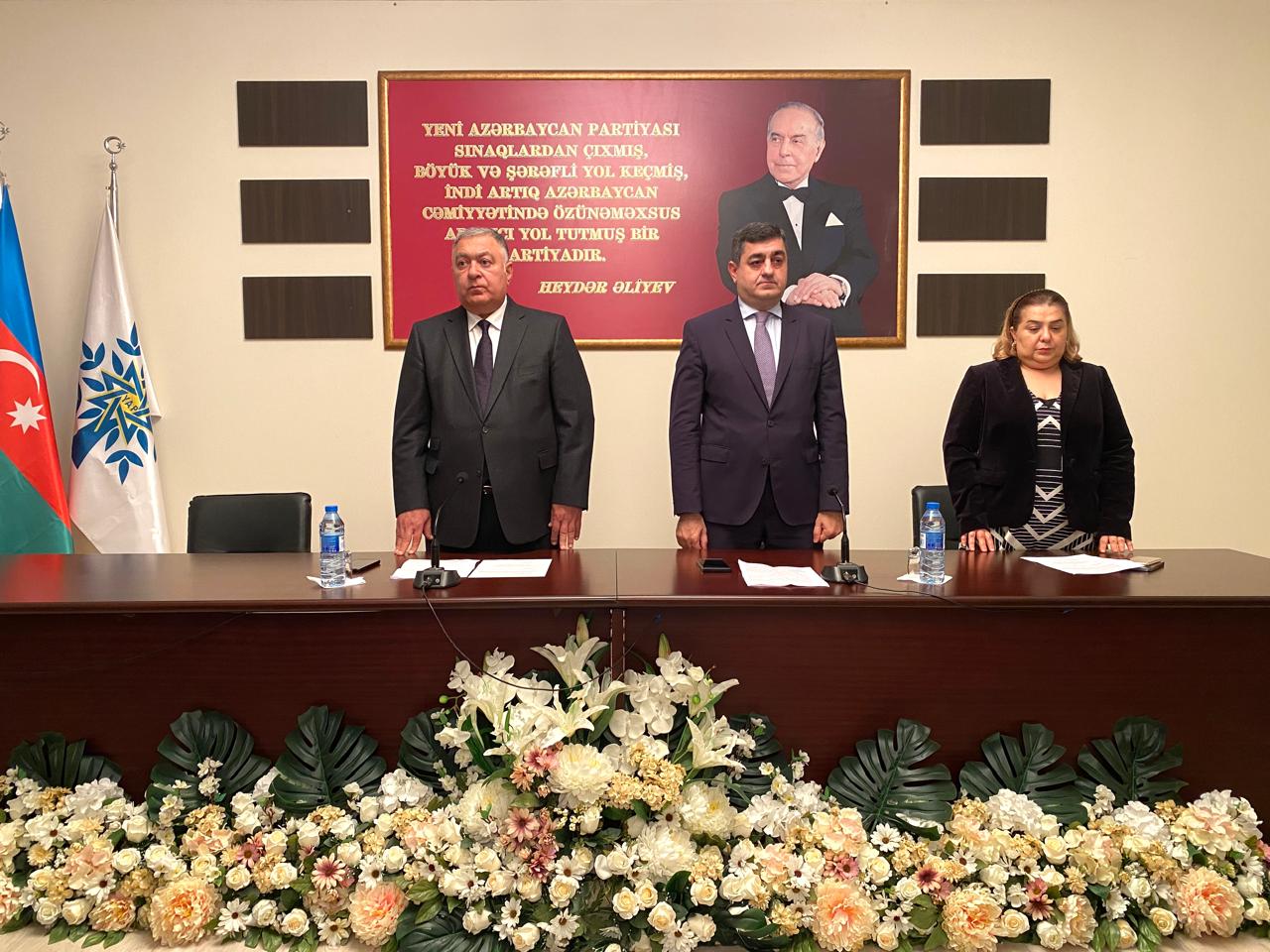Gundemws.az xəbər verir ki, YAP Xəzər rayon təşkilatının inzibati binasında təşkil olunan tədbirdə ilk öncə qonaqlar Ulu öndər Heydər Əliyevin əziz xatirəsini yad edərək, abidəsi önünə güllər düzüblər. Akt zalında davam edən görüşdə Azərbaycan Respublikasının Dövlət Himni səsləndirilmiş, ulu öndər Heydər Əliyev və Vətənimizin ərazi bütövlüyü uğrunda canlarından keçən şəhidlərimizin əziz xatirəsi bir dəqiqəlik sükütla yad edilmişdir.