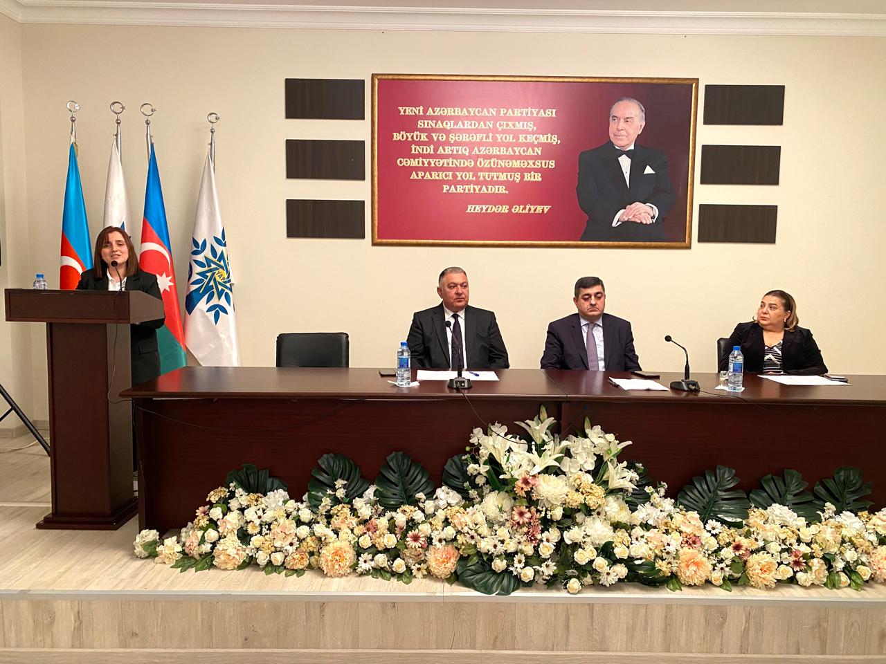 “Konstitusiya və Suverenlik İli” çərçivəsində Xəzər Rayon İcra Hakimiyyəti və Yeni Azərbaycan Partiyasının Xəzər rayon təşkilatının birgə təşkilatçılığı ilə keçirilən tədbirdə Xəzər Rayon İcra Hakimiyyəti başçısının I müavini Elşən Qurbanov, YAP Xəzər Rayon Təşkilatının sədri Namiq Əhmədov, Başçının müavini Lalə Əhmədova, rayon İcra Hakimiyyətinin məsul əməkdaşları, rayonunun idarə, müəssisə rəhbərləri, müəllimlər və gənclər iştirak ediblər.