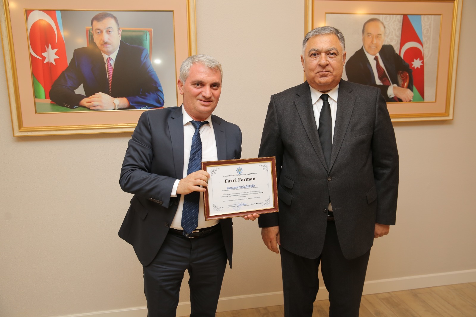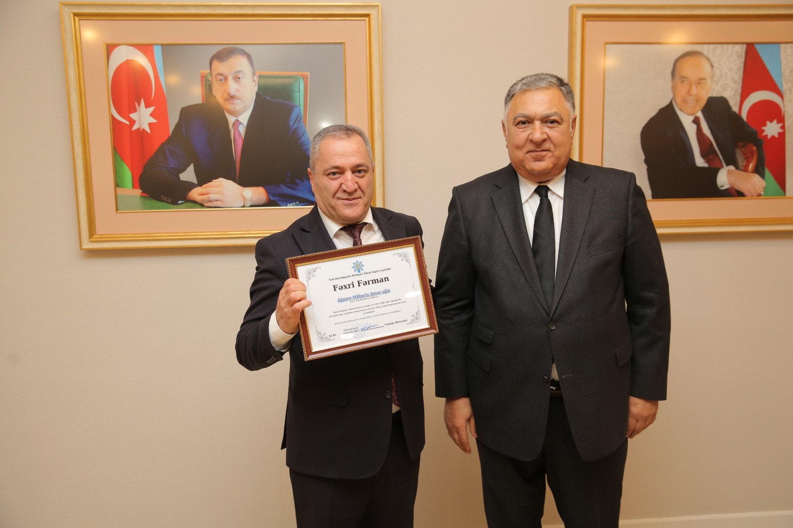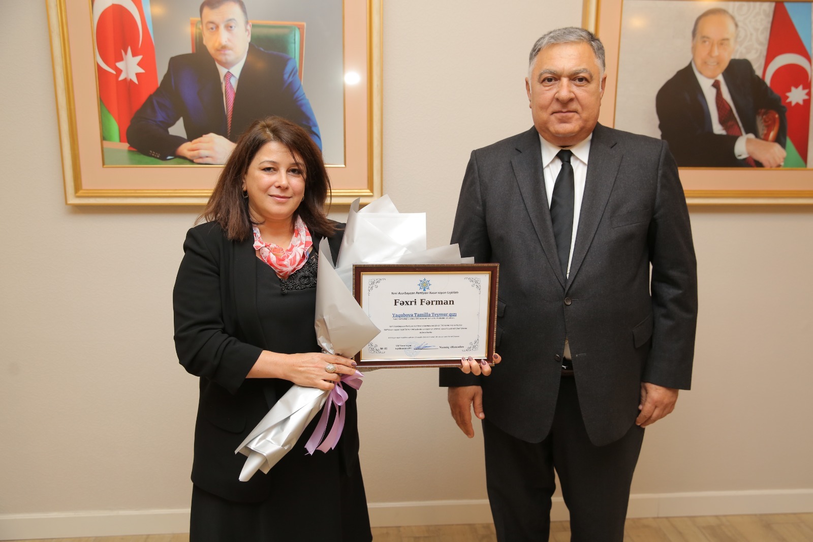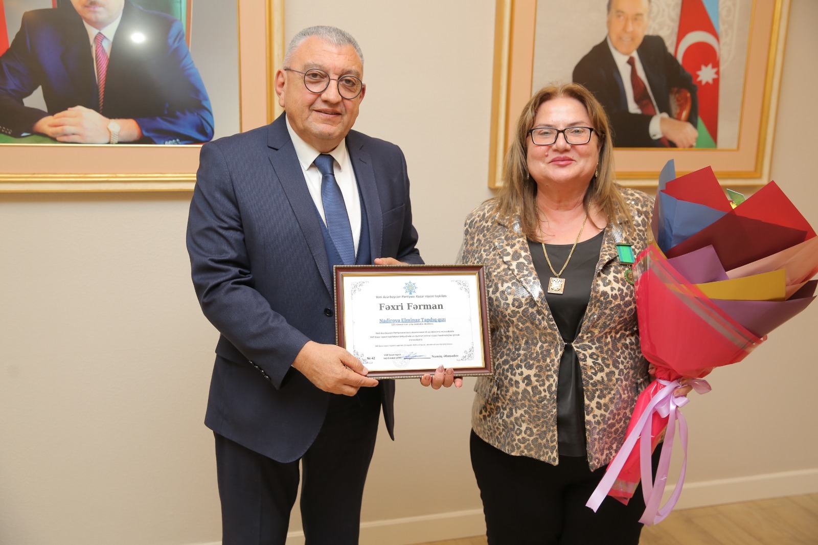 Çıxışlardan sonra Yeni Azərbaycan Partiyasının təsis olunmasının 33-cü ildönümü münasibəti ilə partiya sıralarına yeni qəbul olunan şəxslərə üzvlük vəsiqələrinin təqdim olunmuş, YAP Xəzər rayon təşkilatının inkişafında və rayonun ictimai-siyasi həyatında fəal iştirak edən partiya üzvlərinin fəxri fərman və qiymətli hədiyyələrlə təltif edilmişdir.