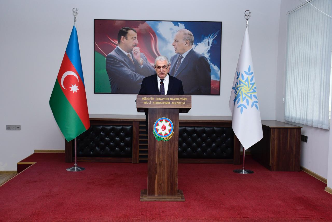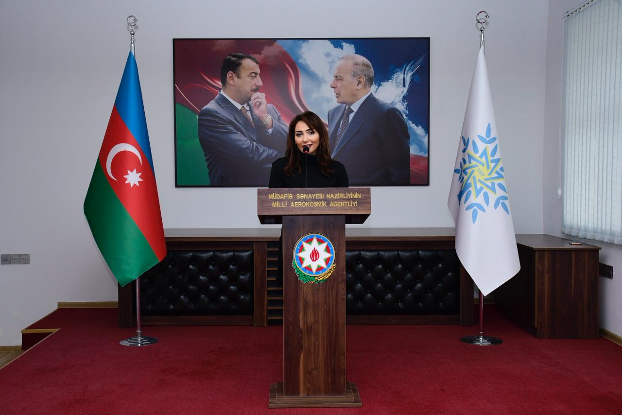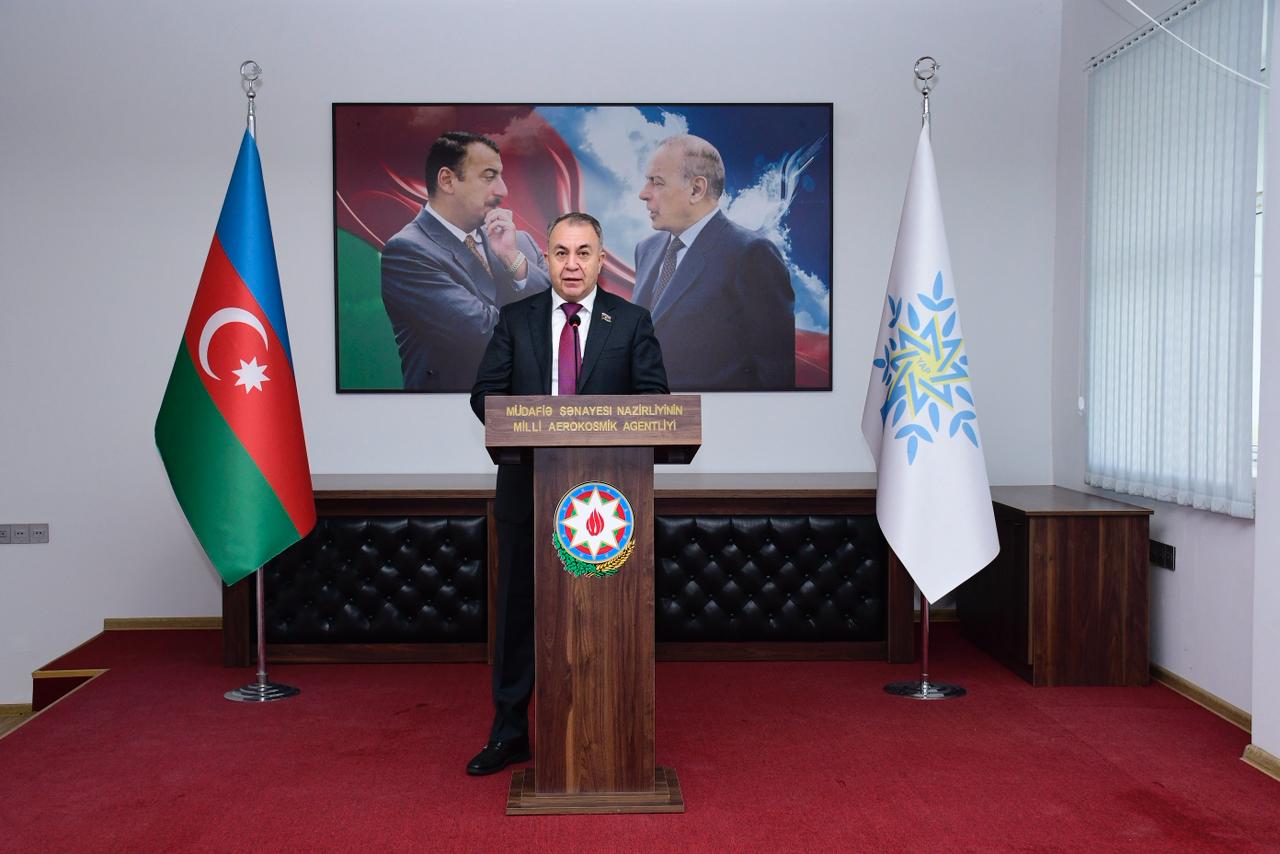 Tədbiri giriş nitqi ilə açan Milli Aerokosmik Agentliyinin Müşahidə Şuarsının sədri Natiq Cavadov çıxış etdi. Onun sözlərinə görə qüdrətli və qalib Azərbaycan reallığı xalqımızın Ümummilli lideri Heydər Əliyevin əbədiyaşar ideyaları və tükənməz dövlətçilik irsi ilə bağlıdır. Ulu öndərin milli maraqlara əsaslanan uzaqgörən siyasəti Azərbaycanın müstəqil dövlət kimi tərəqqisini təmin edib. Azərbaycan Respublikasının Prezidenti, Yeni Azərbaycan Partiyasının Sədri İlham Əliyev Ümummilli liderin dövlətçilik irsini müasir dövrün çağırışlarına uyğun zənginləşdirərək uğurlu siyasət həyata keçirməklə ölkəmizə tarixi nailiyyətlər qazandırıb.