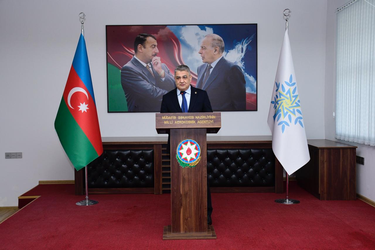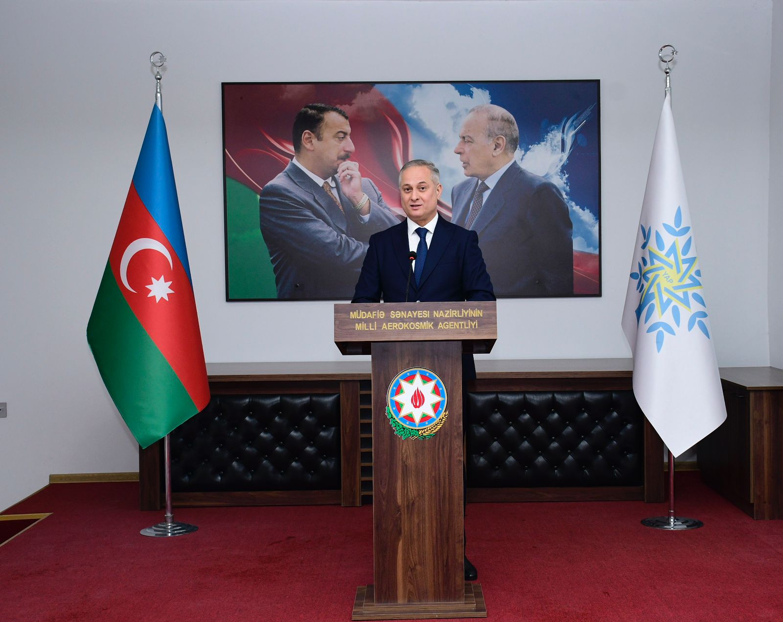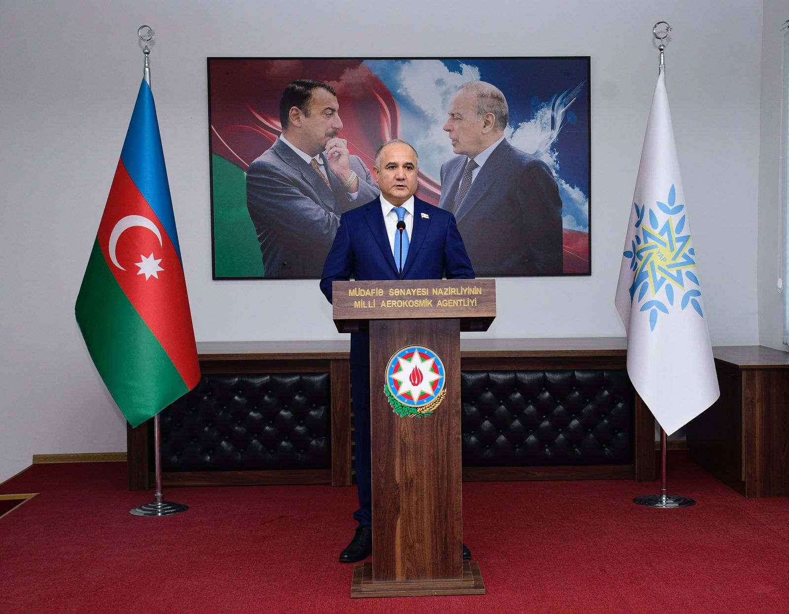 Tədbiri giriş nitqi ilə açan Milli Aerokosmik Agentliyinin Müşahidə Şuarsının sədri Natiq Cavadov çıxış etdi. Onun sözlərinə görə qüdrətli və qalib Azərbaycan reallığı xalqımızın Ümummilli lideri Heydər Əliyevin əbədiyaşar ideyaları və tükənməz dövlətçilik irsi ilə bağlıdır. Ulu öndərin milli maraqlara əsaslanan uzaqgörən siyasəti Azərbaycanın müstəqil dövlət kimi tərəqqisini təmin edib. Azərbaycan Respublikasının Prezidenti, Yeni Azərbaycan Partiyasının Sədri İlham Əliyev Ümummilli liderin dövlətçilik irsini müasir dövrün çağırışlarına uyğun zənginləşdirərək uğurlu siyasət həyata keçirməklə ölkəmizə tarixi nailiyyətlər qazandırıb.