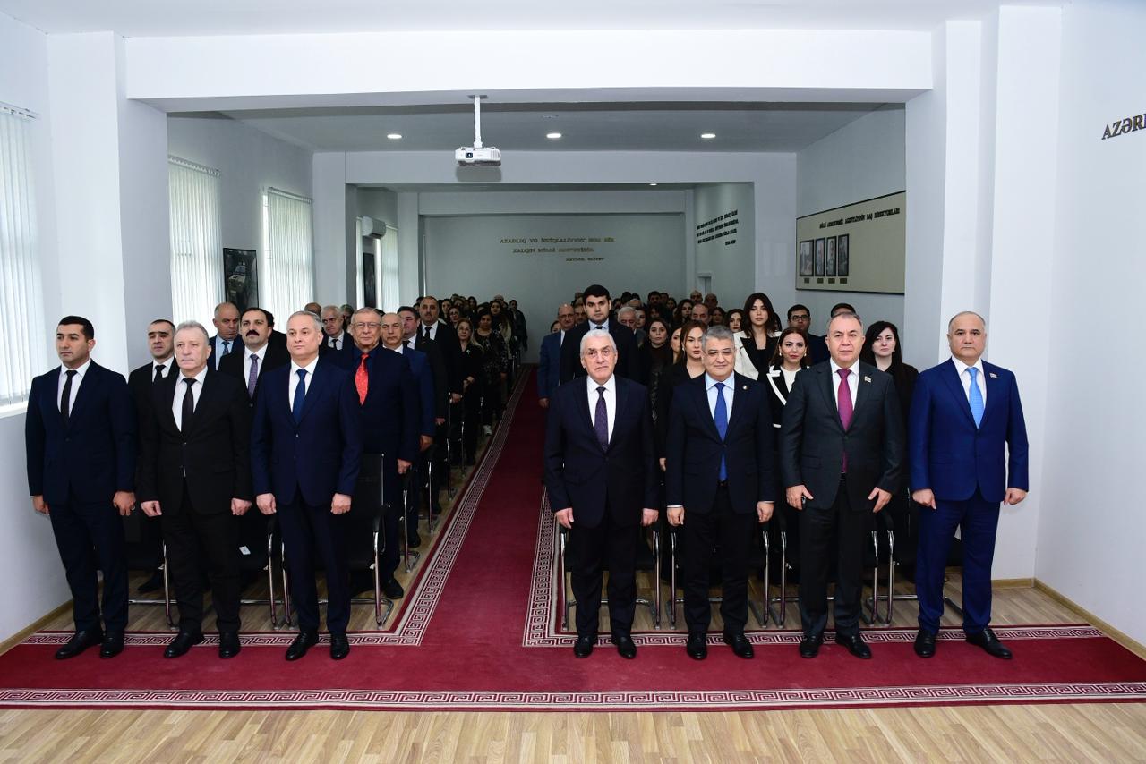Gundemws.az xəbər verir ki, tədbirin rəsmi hissəsində Ulu öndər Heydər Əliyevin və Azərbaycanımızın müstəqilliyi, suverenliyi, torpaqlarımızın ərazi bütövlüyü uğrunda canlarından keçərək ən uca zirvə- Şəhidlik zirvəsinə ucalmış qəhrəmanlarımızın əziz xatirəsi bir dəqiqəlik sükutla yad edildi. Azərbaycan Respublikasının Dövlət Himni səsləndirildi.